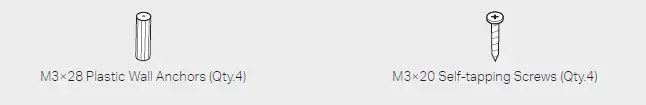 - Insert the plastic wall anchors into the 6 mm diameter holes.