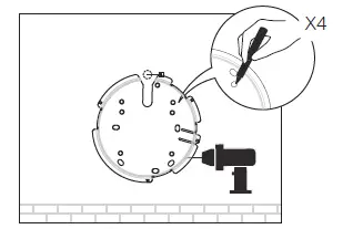 - If your Ethernet cable feeds through the wall, position the mounting bracket below the cable hole. Mark four positions for the screw holes and