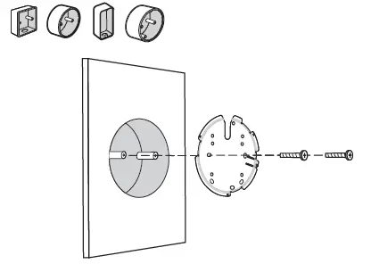 - Secure the mounting bracket to the wall by driving the self-tapping screws into the anchors. Make sure that the shoulders of the mounting bracket are on the outside.