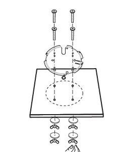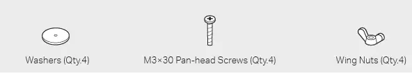 - Secure the mounting bracket to the ceiling tile using four M3x30 pan-head screws, washers, and wing nuts, as shown on the left.