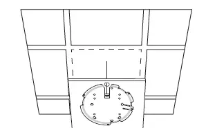 - Place the mounting bracket in the center of the ceiling tile. Mark four positions for the screw holes and a location for the Ethernet cable hole.