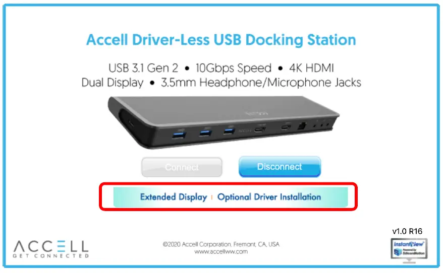 4. Extended Mode can be enabled for Windows / Mac by installing additional drivers from the Driver-Less InstantView Interface.