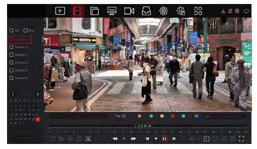 Step 2: Select “Channel > Date”, the searched video is displayed on the time progress bar, click ” ” to start playing the video.