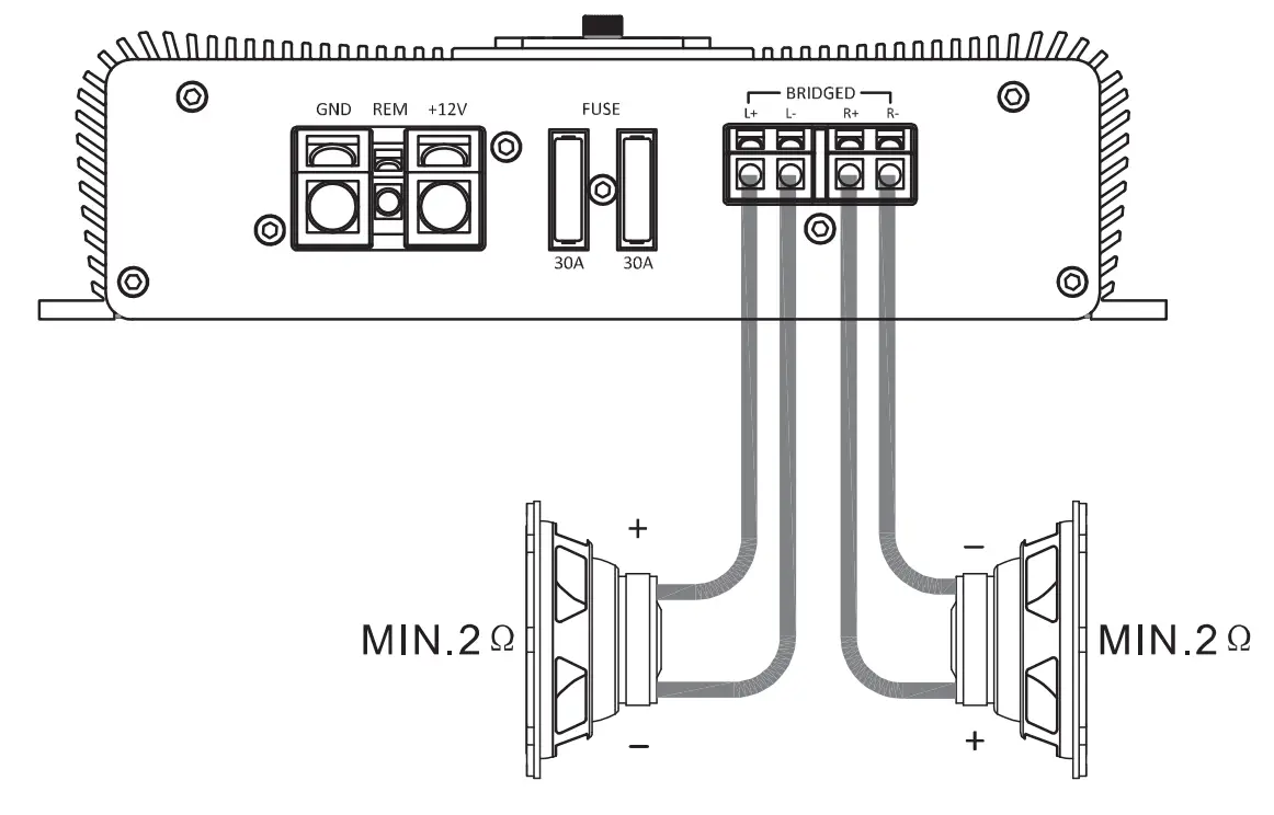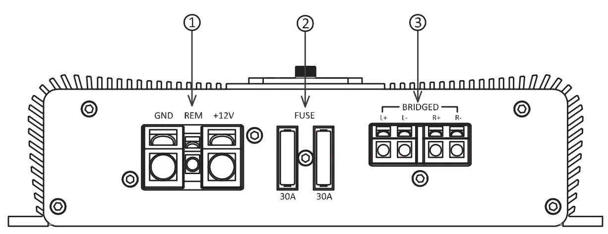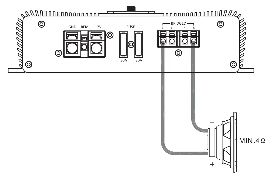 Two 30A fuses are installed on the power amplifier. - Speaker terminal