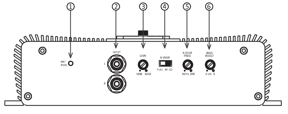 6 | ![]() | Bass boost The variable bass boost control is designed to give you increased output, 0-6dB , at 40 Hz. |