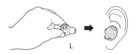 Check the direction of each earbud and insert them into your ears by holding them so that you see the imprinted direction marks. Wear the earbuds until they fit comfortably in your ears.