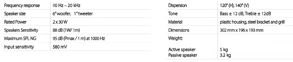 PowerBox 61 is a pair of two-way loudspeakers consisting of a loudspeaker with a built-in stereo amplifier and a second non-powered loudspeaker ready to connect to active by Euroblock connector. High-performance 2 x 30 W power amplifier. 6″ woofer and 1 “tweeter. U-bracket for mounting on the wall or ceiling.