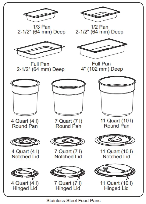 HW-FUL and CHW-FUL models are capable of holding a variety of pan combinations listed below. These models are designed to be placed on a non-combustible countertop.