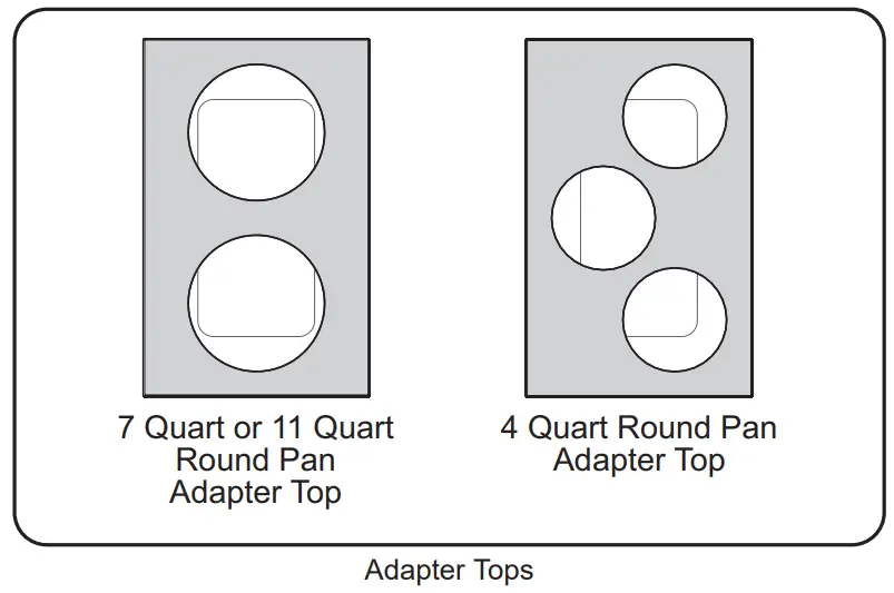 The following adapter tops are available to allow rectangular heated wells to hold round pans
