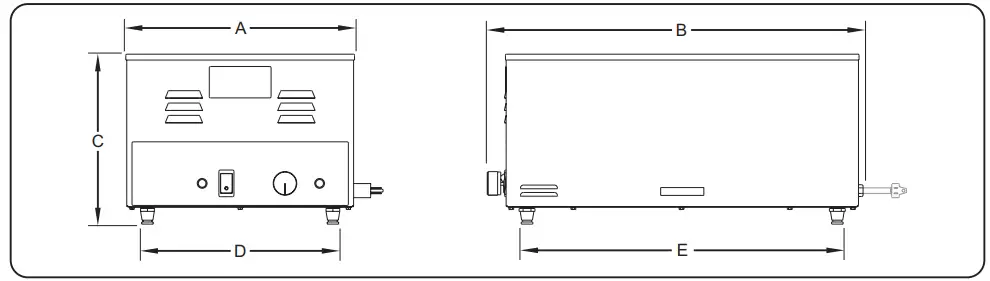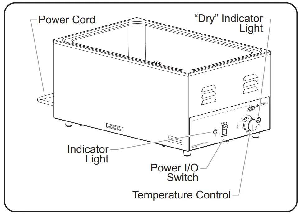 All Countertop Heated Well units are reliable and versatile. Units have a stainless steel and aluminized steel housing with a metal sheathed heating element that is available in standard and high wattage. Features include a Power I/O Switch (on/ off), a Temperature Control, a “Dry” Indicator Light, and a 6′ (1829 mm) cord and plug set.