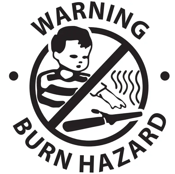 - Be aware that some surfaces may become hot. Do not touch and supervise others accordingly. The unit is VERY HOT when in use. Take care to avoid contact between the hot surface and bare skin, particularly around the ears, face, and neck when in use.