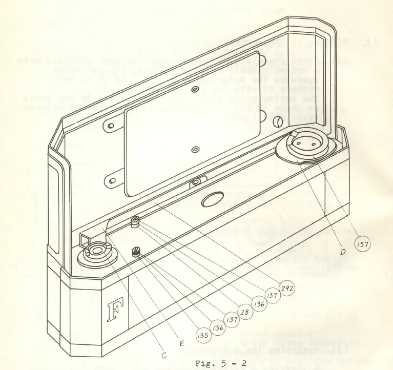 - Attach the Motor Drive to the Too much vertical play between the Motor Drive and the camera will cause incorrect operation. To reduce the play, bend parts D of #157 and E of #292 as shown in Fig. 5 – 2.