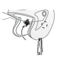 - Slide the Headset Clip onto the left side of the helmet (when on your head). Take care to place the inside of the Headset Clip under the helmet padding.