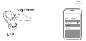 c. Turn on Bluetooth and select “ ES02 ES02 ” from the Bluetooth list, and re-connect. - The earphones battery life is not last-long as expected?