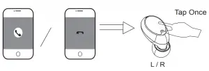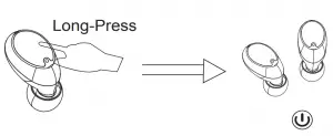 Step 1 | Turn off Bluetooth to disconnect the earphones Touch left / right multifunctional button for 3 seconds to power off earphones | |