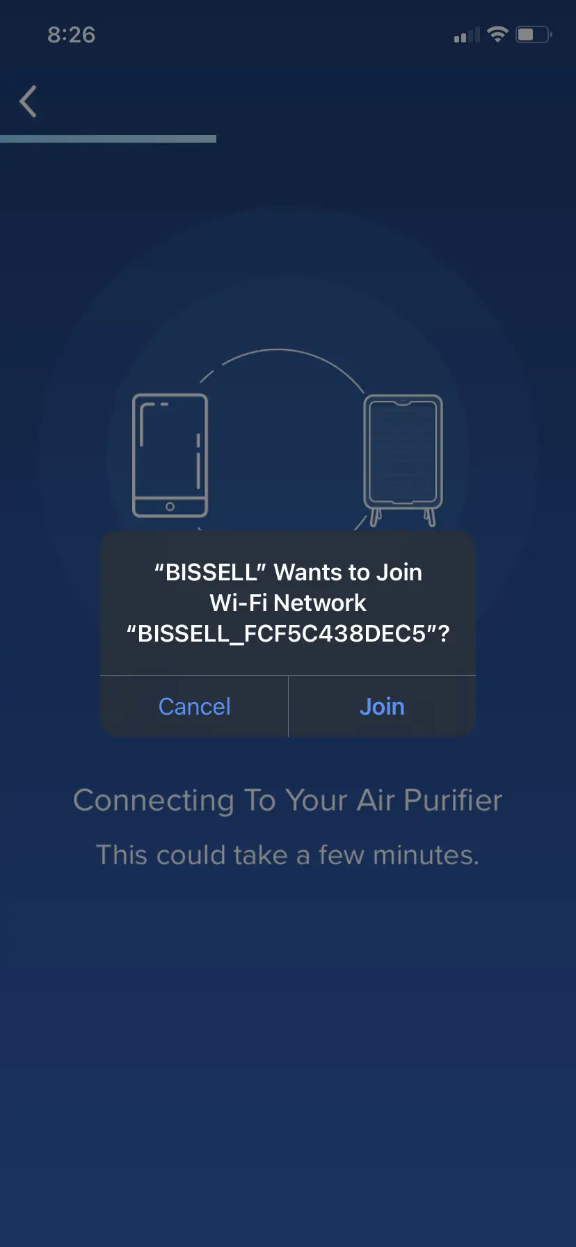 - When prompted that BISSELL wants to join Wi-Fi Network to find and connect to devices on your local network > Click “Join”