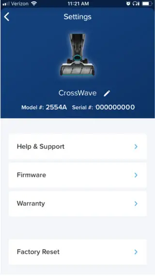 - To change the WiFi network that your CrossWave Cordless Max is connected to, go to the settings screen within the app and click on the WiFi settings option and then follow the prompts