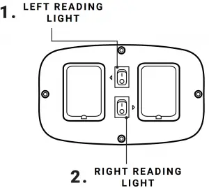 Push to turn the left reading light on or off. - RIGHT LIGHT POWER SWITCH