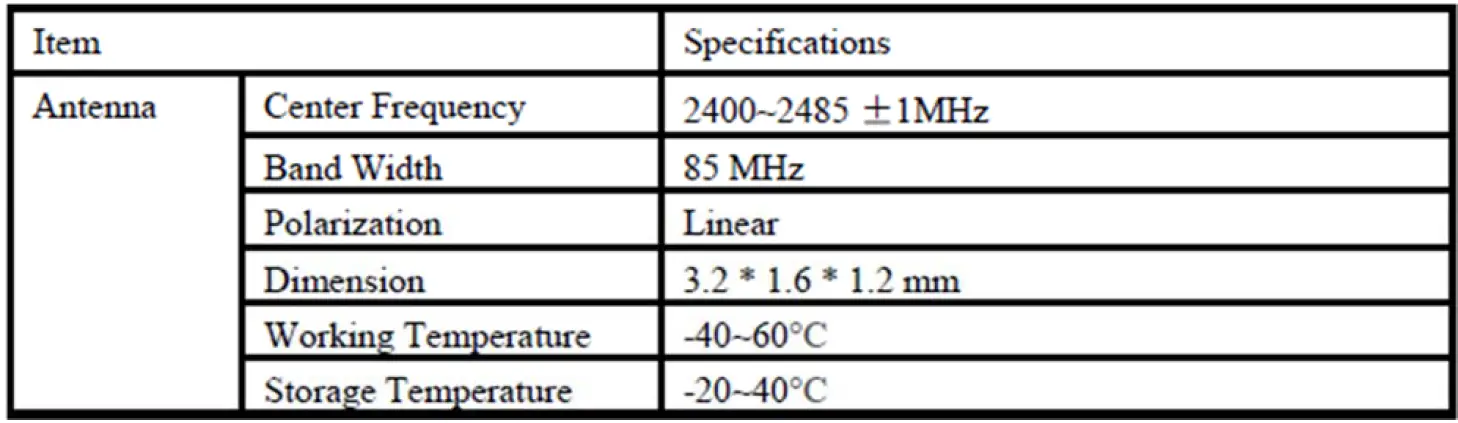 - Max. peak Antenna gain : -1.07 dBi (2400 – 2485 MHz)
