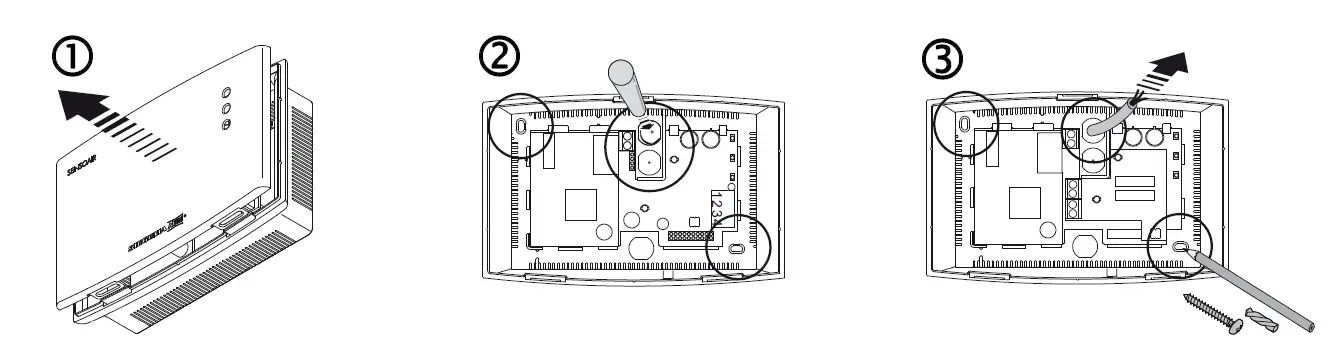- Pull the cable set through the cut-out and use the back part of the casing as a pattern for the screws.