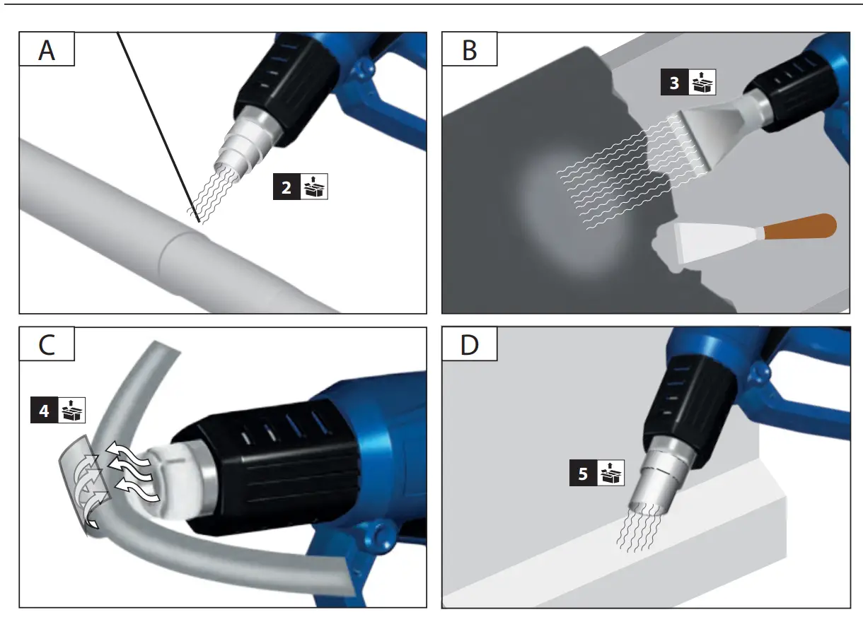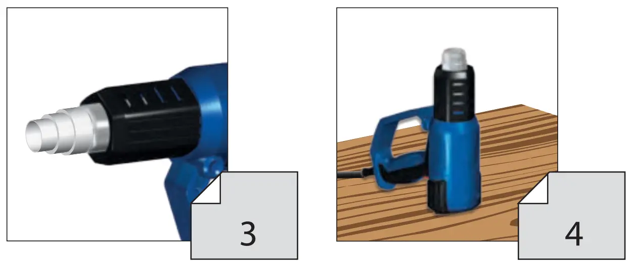 - Never cover or close the hot air nozzle.