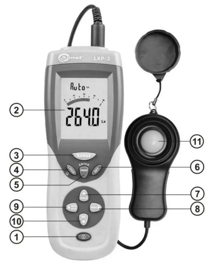- “Peak-hold” function that enables the user to measure the peak signal of light pulse longer than 0.1 s (0.4 s for LXP-2 with probe LP-1) and shorter than 1 s,
