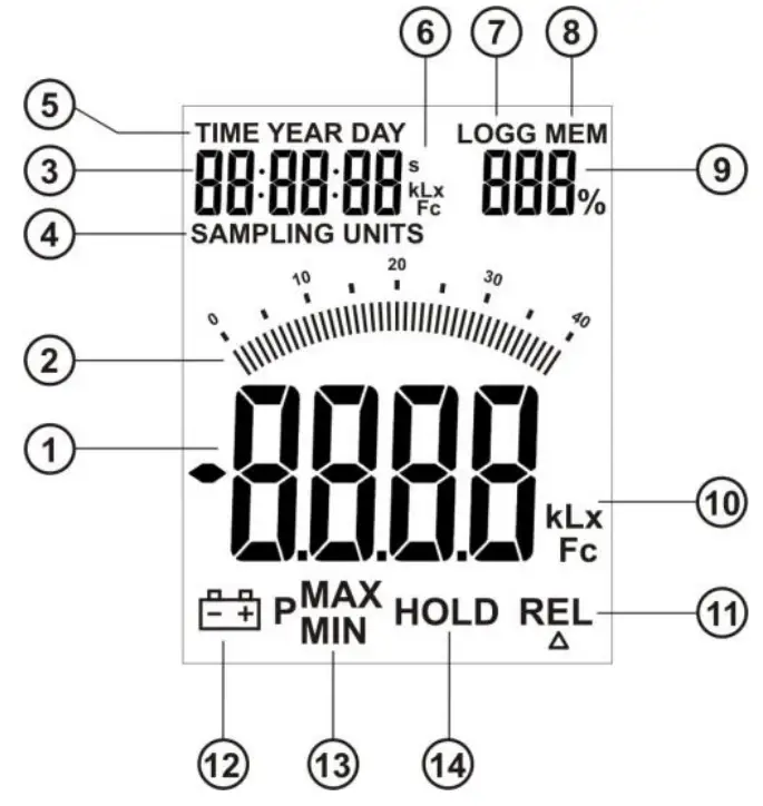 - Bar graph – analogue scale for showing rapid changes in light intensity.
