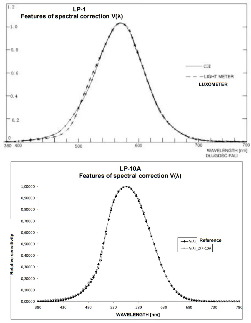 - maximum resolution of light metering: 0.1 lx (0.01 fc) – LXP-2, 0.01 lx (0.001 fc) – LXP-10B, 0.001 lx (0.0001 fc) – LXP-10A,