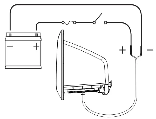 This schematic is to illustrate how the product should be connected to a 12V DC or 24V DC battery/power supply.