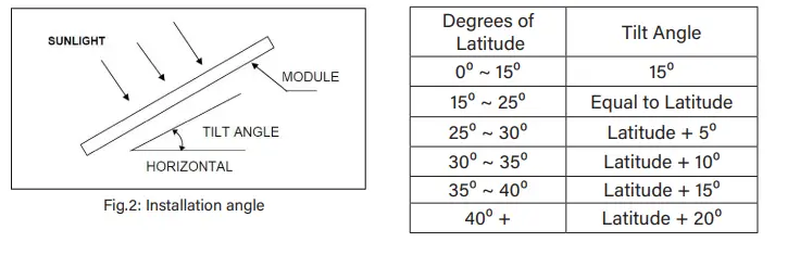 The maximum power is generated when the sun is directed to the module, selecting the best installation angle should consider the sun path during the winter.