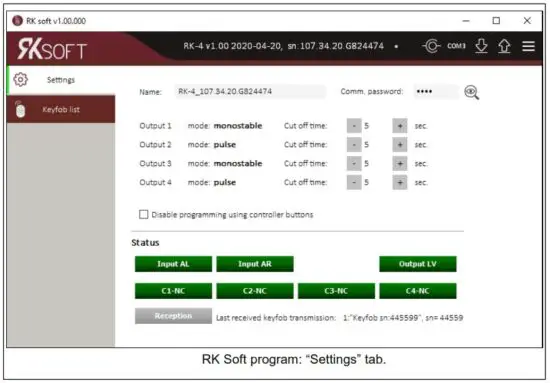 - Option to configure from a computer with RK Soft program installed.