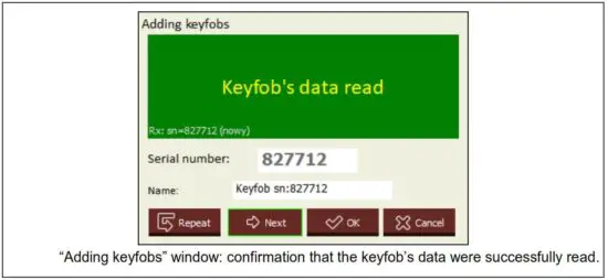 - Click “OK”. The “Keyfob import” window will close.