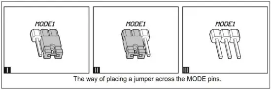 - MODE pins. To be used for setting the operating mode of relay outputs. The digit stands for the number of the relay output (see: “Setting the operating mode of a relay output”).