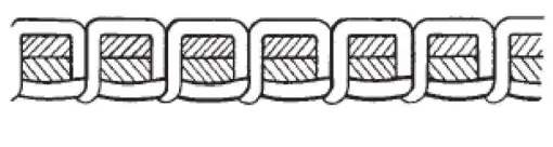 Results with upper and lower tensions balanced so that needle and bobbin threads are drawn into material equally.