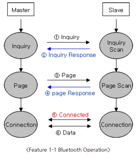 - If a Master finds a Slave and so “inquiry” is successful, a Slave responds to the Master with its information. Interconnection between the Master and the Slave is achieved only if the information from the Slave is corresponded with the Master, and the Slave sends data to the Master.