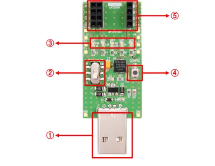 STATUS LED | USB LED: USB port status LED POWER LED: 3.3V power supply LED STATUS LED: Status confirmation LED RX LED: UART input confirmation LED TX LED: UART Output confirmation LED |