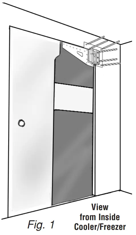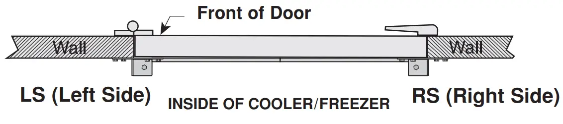 | CAUTION: Make sure that the door jamb is strong enough to support the weight and force of the door. If questionable, check with cooler/freezer manufacturer. |
