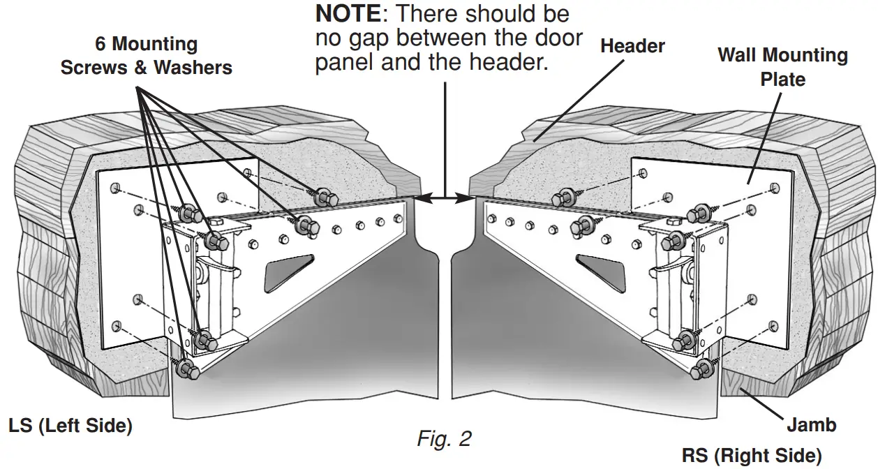 IMPORTANT: The panel must be able to move freely beneath the door header and there should be no gap between the door panel and the header. Remove the unit and drill the holes. NOTE: A 5/ 32” drill bit should be used.