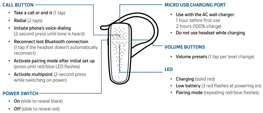 Your headset may look slightly different than the illustration, but will still work as described.