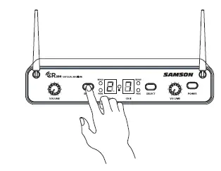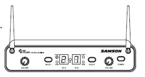 - SELECT BUTTON – Press this button to cycle through each receiver’s operating channels. Press and hold this button to send the channel information to the transmitter via infrared transmission.