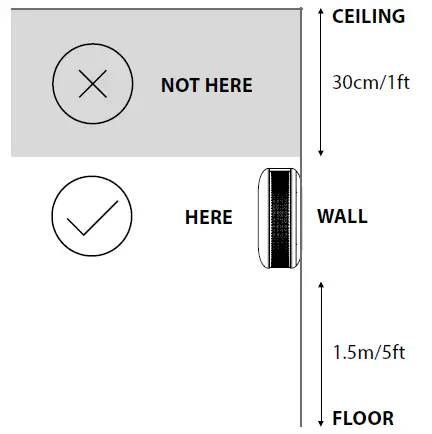 Note: Recommended height of installation is dependant on the purpose of the room and height at which head typically is.