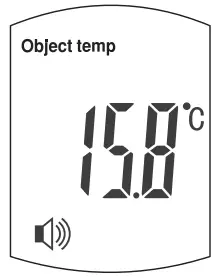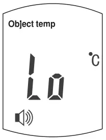 ![]() | In object mode. Measured temperature is below measuring range of <0.0°C/32,0°F Or environmental temperature is below system operating range <5°C/41°F It is shown on the LCD with red LED. |