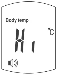 - If the reading is above value 38.5°C(109.4°F), the display will show together with 3 short beeps, the red backlight lasts for alarm.