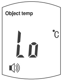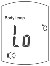 ![]() | In body mode. Measured temperature is bellow Measuring Range of <32°C/89,6°F It is shown on the LCD with red LED. |