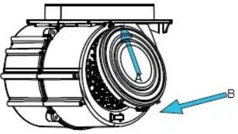 - Push the other side of the carbon filter toward the fan to make it flat(as per the arrow B shown),and then press filter into fan.