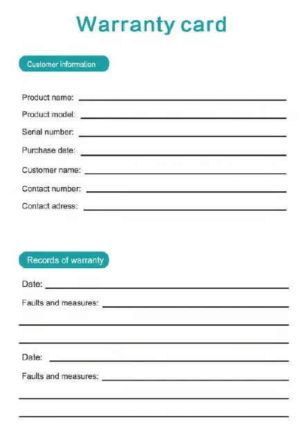 - Please keep this warranty service card properly. If the warranty service card is lost, it will not be reissued. Please be sure to keep the invoice or copy or relevant valid proof of purchase. If you cannot provide valid proof of
