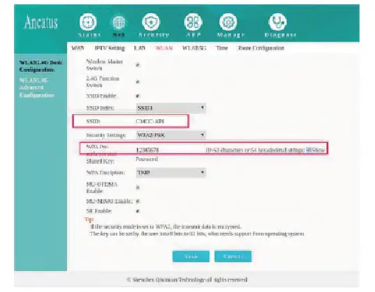 - Modify the 2.4g WIFI name in “SSID”, and modify the WIFI password in