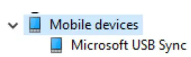 This will indicate the device is using WMDC as its communications method. On the computer, press the Windows key and type in “Device Manager” and select the app once its displayed. In Device Manager, check and see if the device is listed as a ‘Microsoft USB Sync’ device under a section labeled “Mobile devices”.
