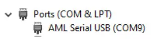 In device manager, see if the device is listed under a section labeled ‘Ports (COM & LPT)’ and assigned a comm port number as seen below: