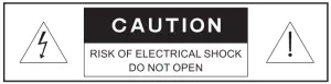 Caution! High voltage inside! To avoid the risk of electric shock do not open or touch elements inside.